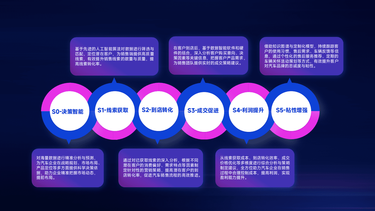 通过拓宽潜在客户来源、、优化线索分配并提高到店转化率,,,,以增强销售效率。。同时,,,,利用线索数据不断优化分析模型,,,,有效提升转化率,,,扩大营销影响力。。。